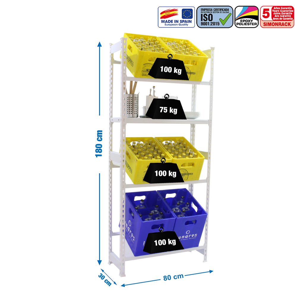 Rayonnage léger tri de bouteille sans vis 1000x800x300 - 4 niveaux Blanc - SIMON RACK - 8425437087813