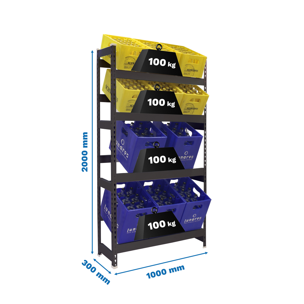 Rayonnage léger tri de bouteille sans vis 2000x1000x300 - 4 niveaux Anthracite - SIMON RACK - 8425437129704