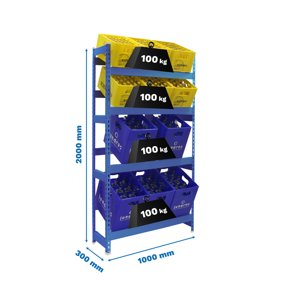 Rayonnage léger tri de bouteille sans vis 2000x1000x300 - 4 niveaux Bleu - SIMON RACK - 8425437119514