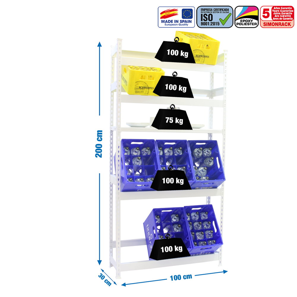 Rayonnage léger tri de bouteille sans vis 2000x1000x300 - 5 niveaux Blanc - SIMON RACK - 8425437087929