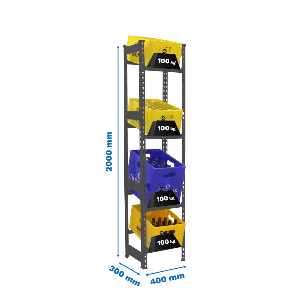 Rayonnage léger tri de bouteille sans vis 2000x400x300 - 4 niveaux Anthracite - SIMON RACK - 8425437129681