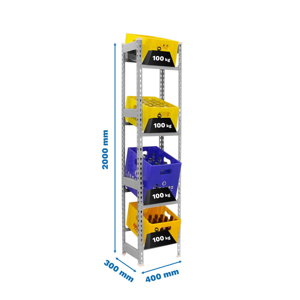 Rayonnage léger tri de bouteille sans vis 2000x400x300 - 4 niveaux Galvanisé - SIMON RACK - 8425437119521
