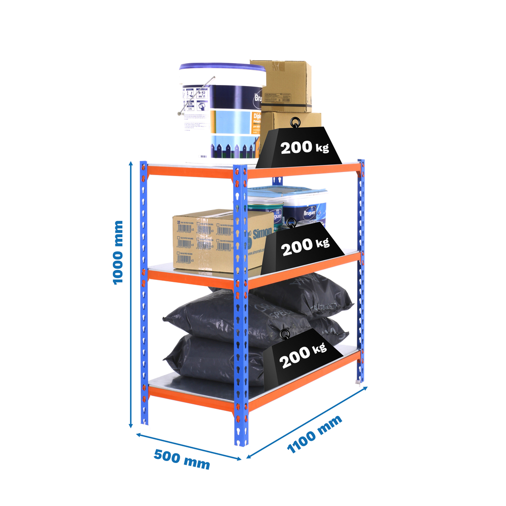 Rayonnage métallique léger sans vis 1000x1100x500 - 3 niveaux Bleu/Orange - SIMON RACK - 8425437085550
