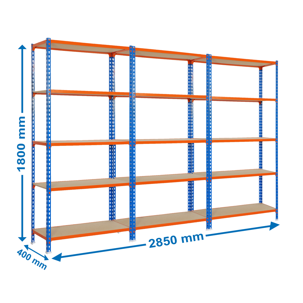 Rayonnage métallique léger sans vis 1800x900x400 - 15 niveaux Bleu/Orange/Bois - SIMON RACK - 8425437088599