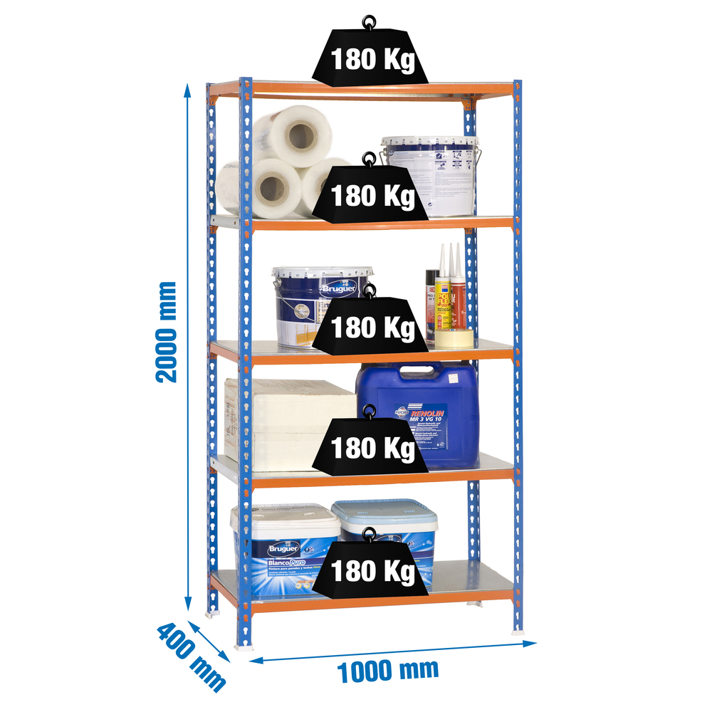 Rayonnage métallique léger sans vis 2000x1000x400 - 5 niveaux Bleu/Orange - SIMON RACK - 8435104912720