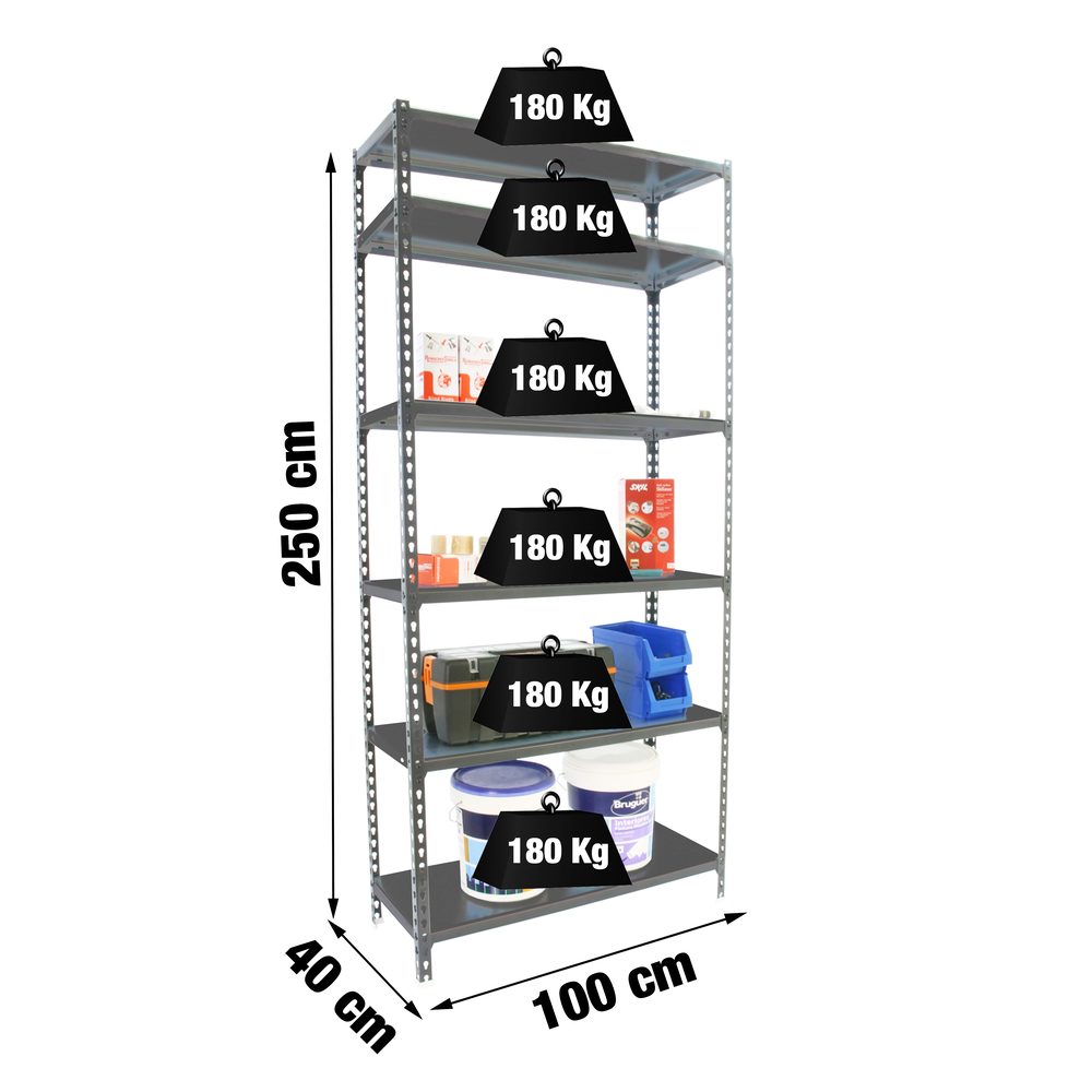 Rayonnage métallique léger sans vis 2500x1000x400 - 6 niveaux Anthracite - SIMON RACK - 8425437098376