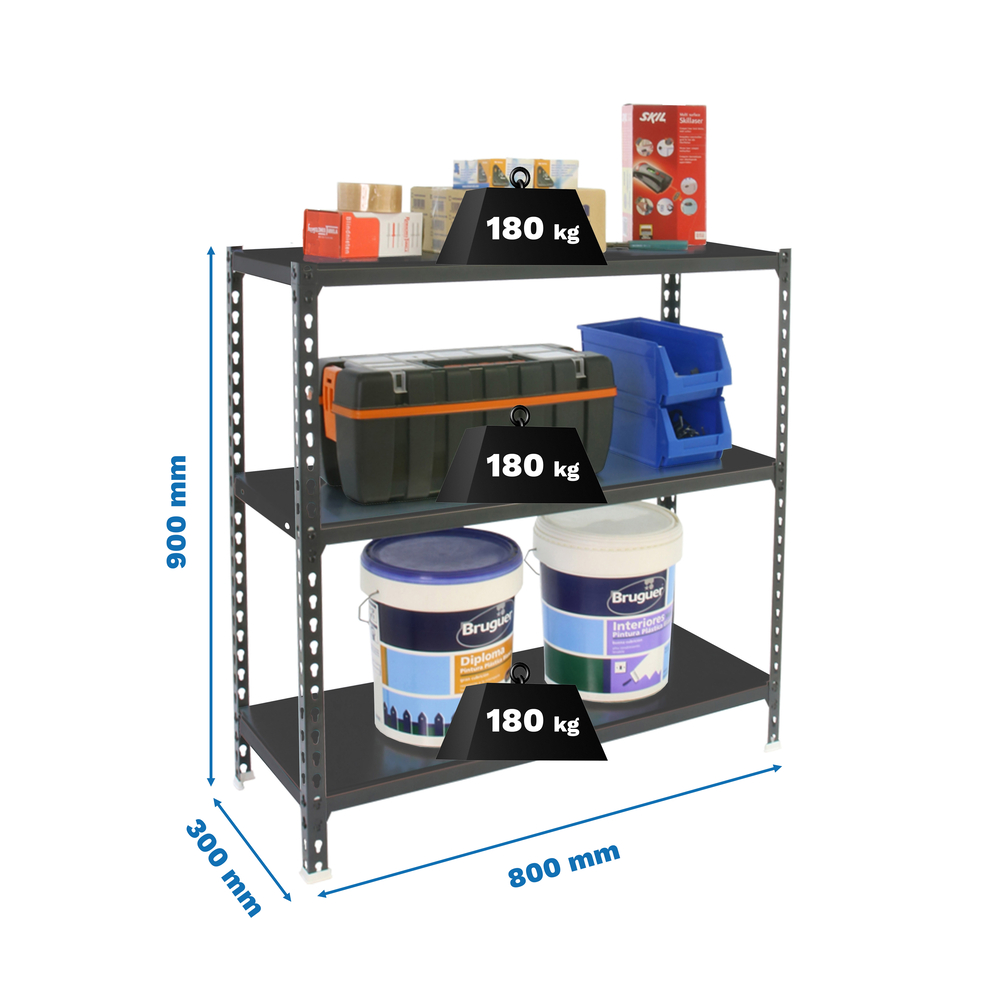 Rayonnage métallique léger sans vis 900x800x300 - 3 niveaux Anthracite - SIMON RACK - 8425437096785