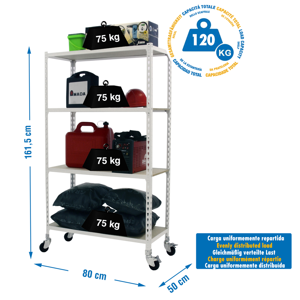 Rayonnage mobile bois-métal léger sans vis 1575x800x500 - 4 niveaux Blanc/Bois - SIMON RACK - 8435104975039