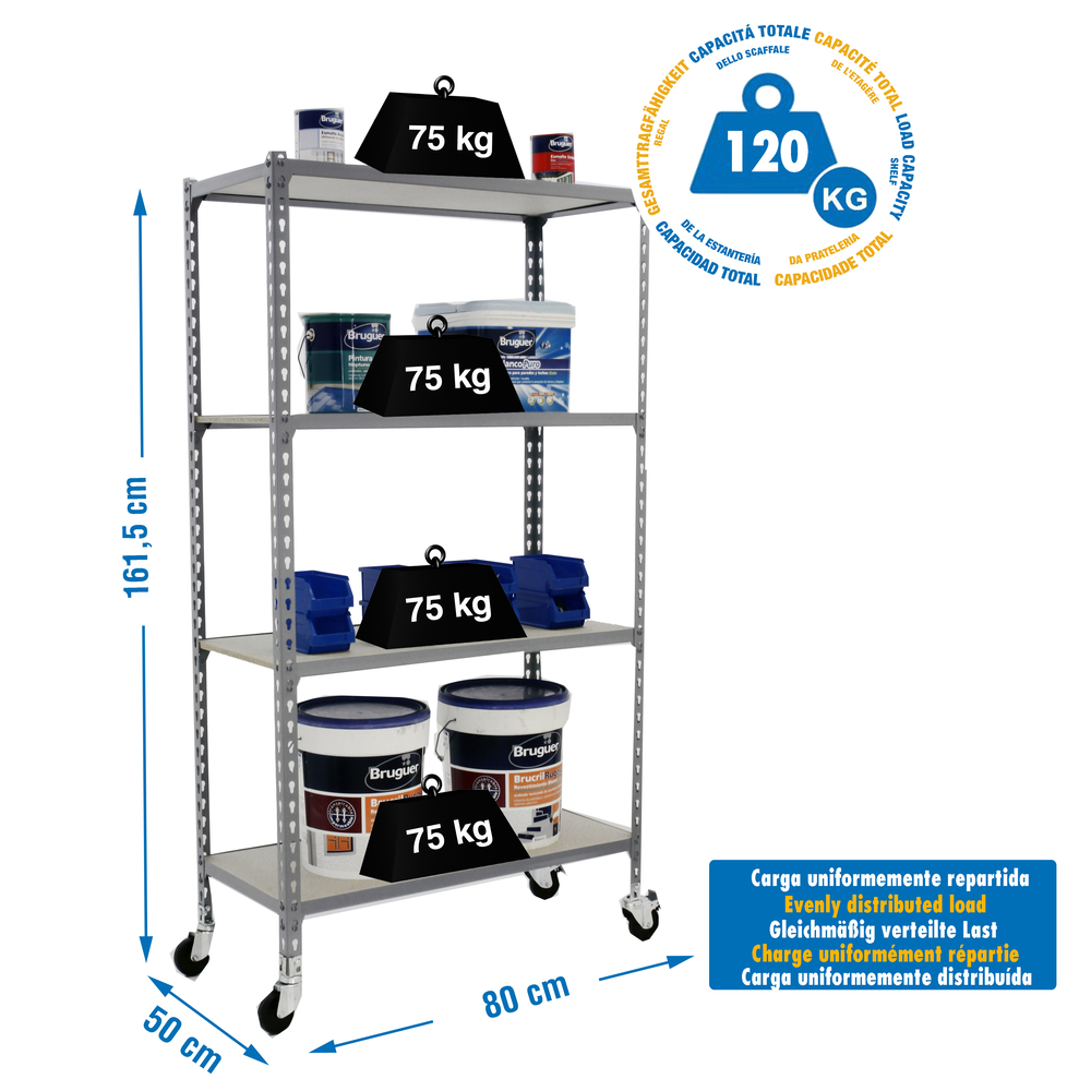 Rayonnage mobile bois-métal léger sans vis 1575x800x500 - 4 niveaux Gris/Bois - SIMON RACK - 8435104963647