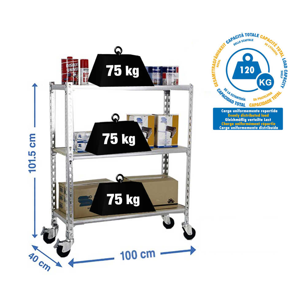 Rayonnage mobile bois-métal léger sans vis 975x1000x400 - 3 niveaux Bois - SIMON RACK - 8435104954454