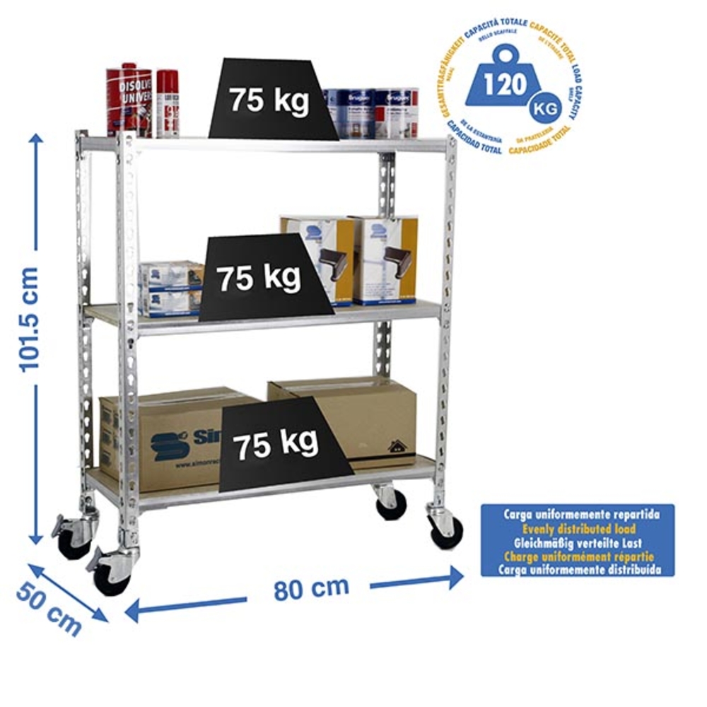 Découvrez Rayonnage mobile bois-métal léger sans vis 975x800x500 - 3 niveaux Bois - SIMON RACK - 8435104954539 disponible à l'achat