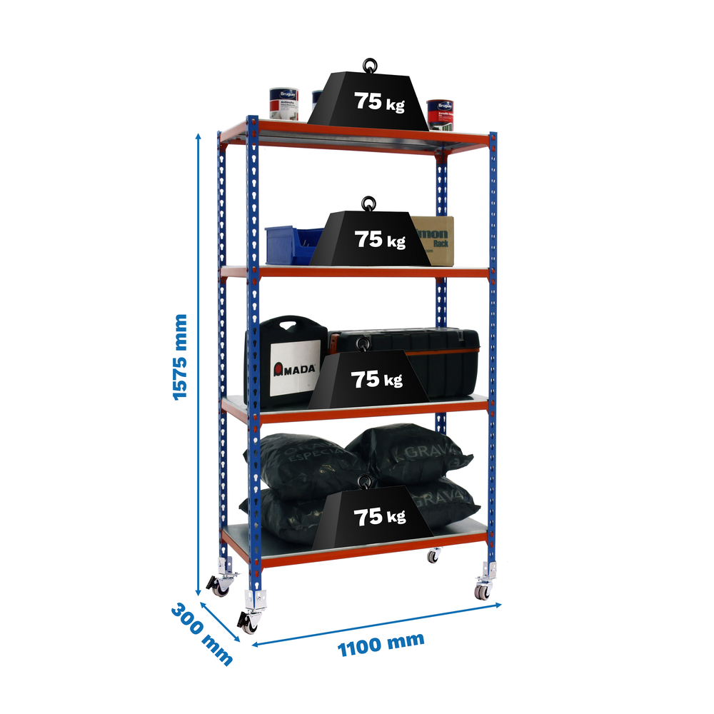 Rayonnage mobile métallique léger sans vis 1575x1100x300 - 4 niveaux Bleu/Orange - SIMON RACK - 8435104962978