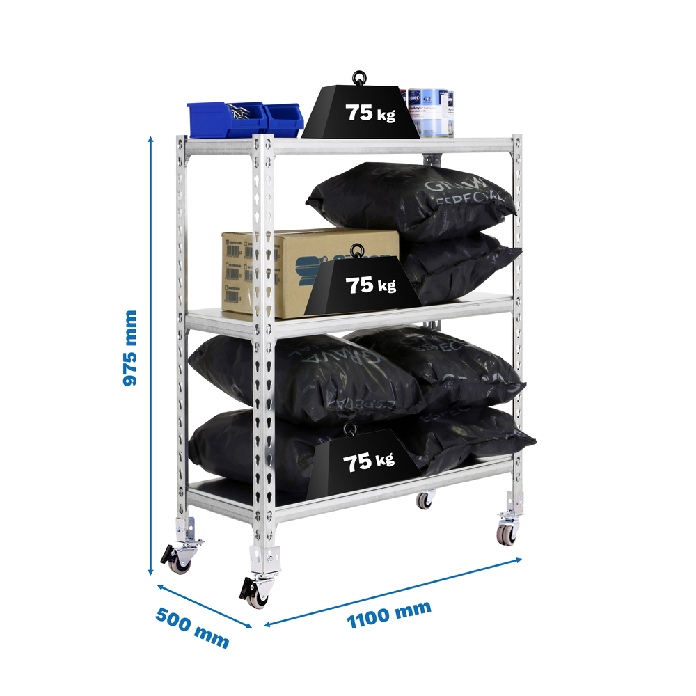 Rayonnage mobile métallique léger sans vis 975x1100x500 - 3 niveaux Galvanisé - SIMON RACK - 8435104953211