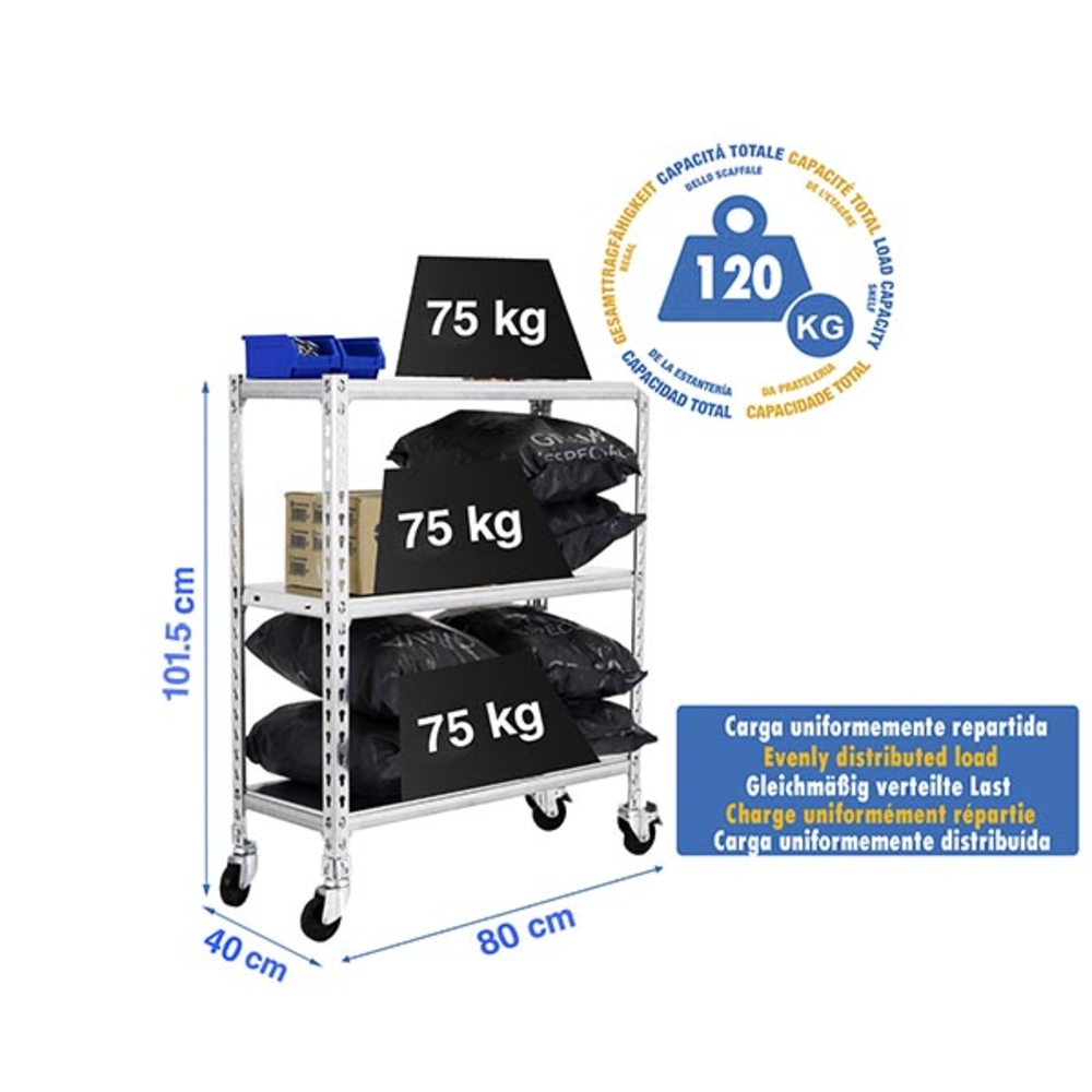 Rayonnage mobile métallique léger sans vis 975x800x400 - 3 niveaux Galvanisé - SIMON RACK - 8435104952931