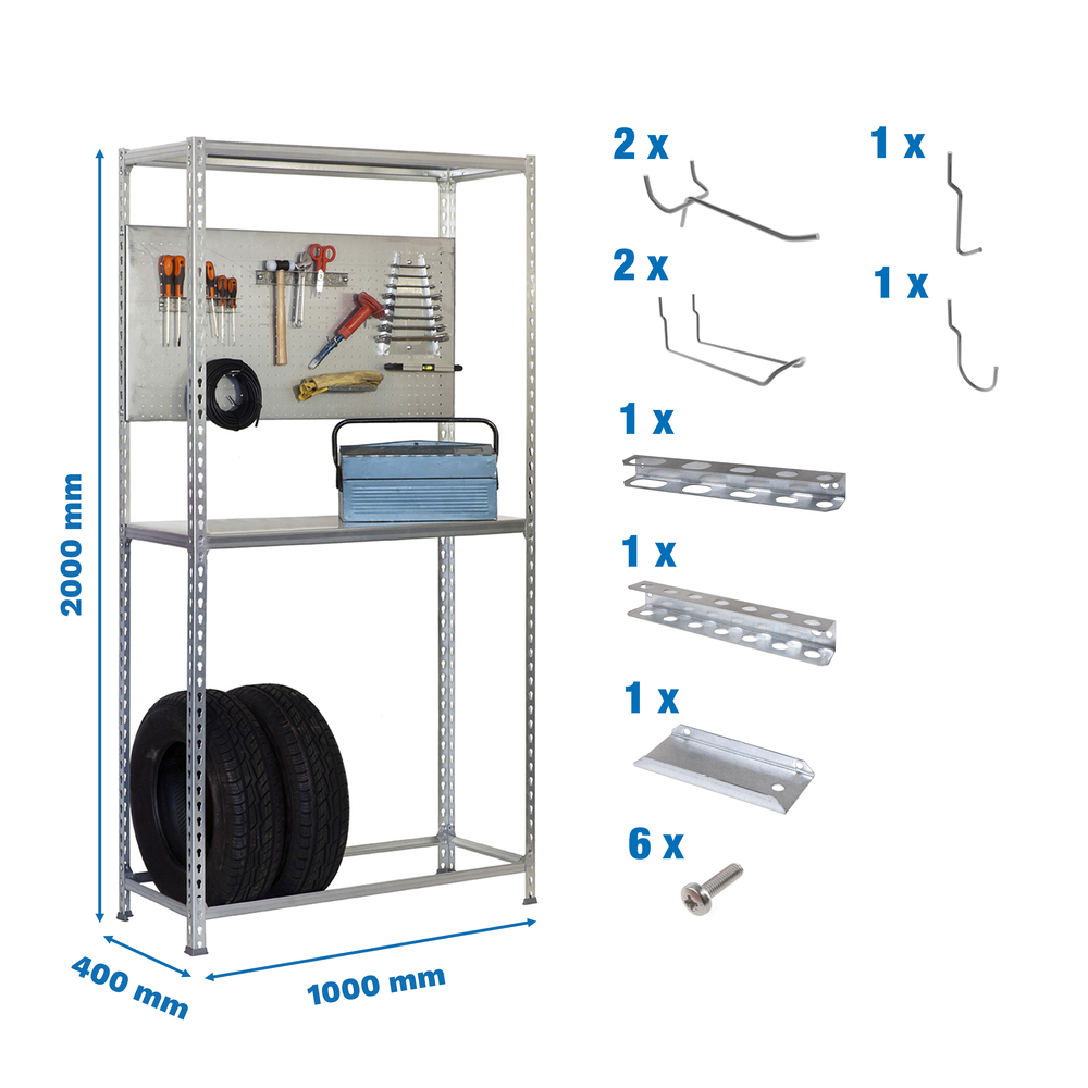 Rayonnage pour garage auto - 2000x1000x400 - Galvanisé - SIMON RACK - 8425437072260