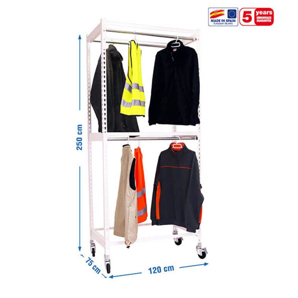 Rayonnage pour vêtements 2575x1200x750 - 2 niveaux Blanc - SIMON RACK - 8435104978627