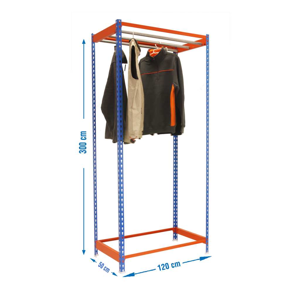 Rayonnage pour vêtements 3000x1200x500 - 1 niveau Bleu/Orange - SIMON RACK