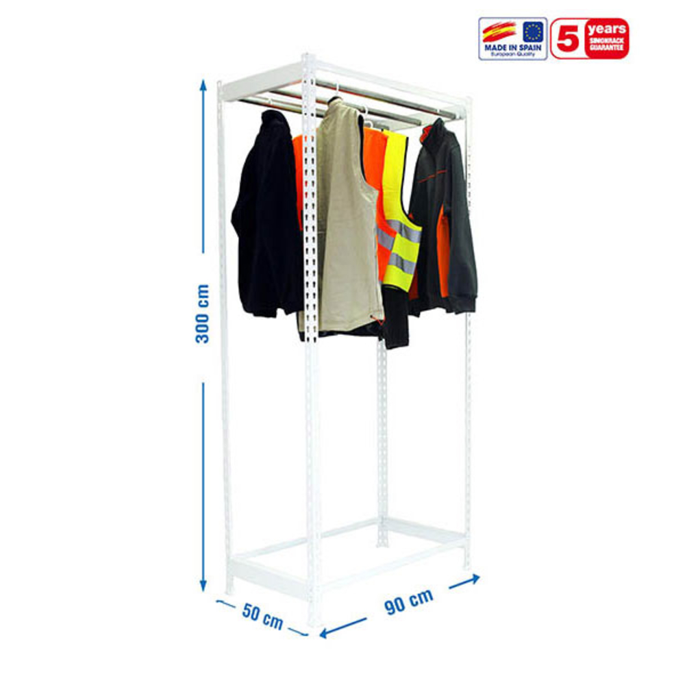 Rayonnage pour vêtements 3000x900x500 - 1 niveau Blanc - SIMON RACK - 8435104978634