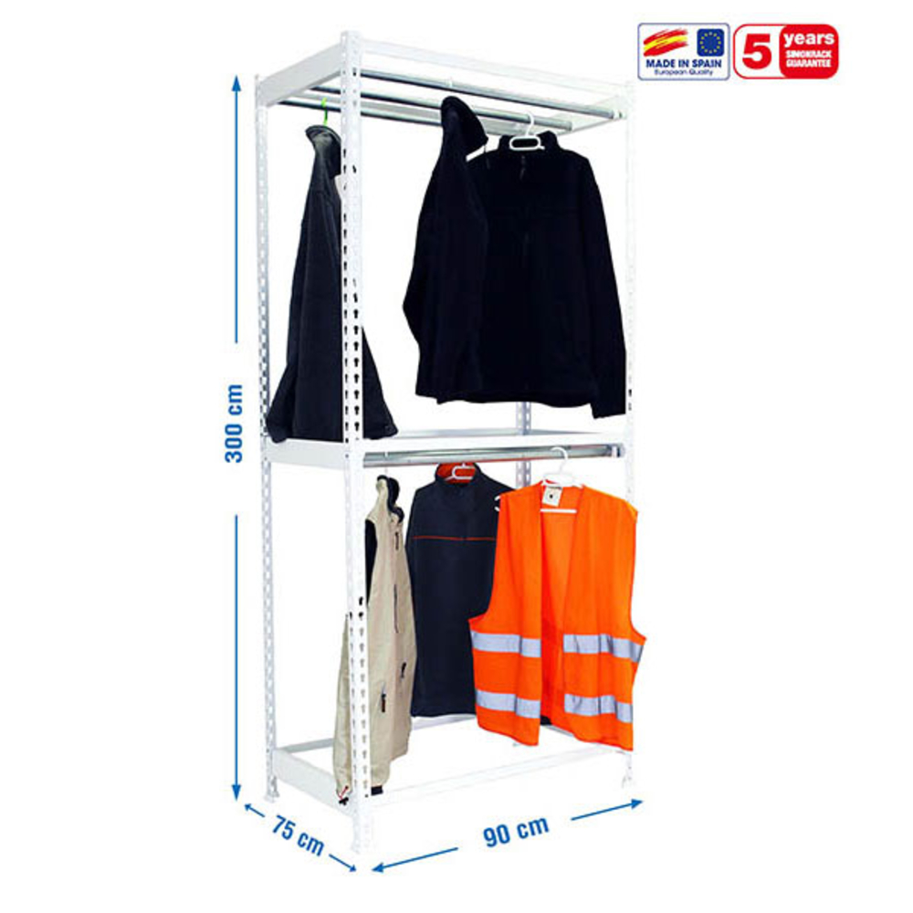 Rayonnage pour vêtements 3000x900x750 - 2 niveaux Blanc - SIMON RACK - 8435104978658