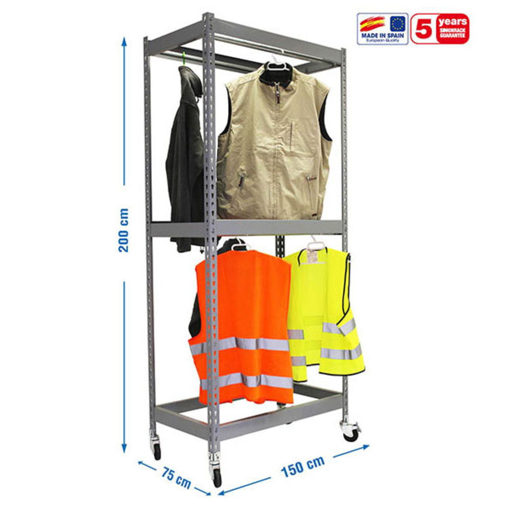 Rayonnage pour vêtements 75x1500x750 - 2 niveaux Gris - SIMON RACK - 8435104978740