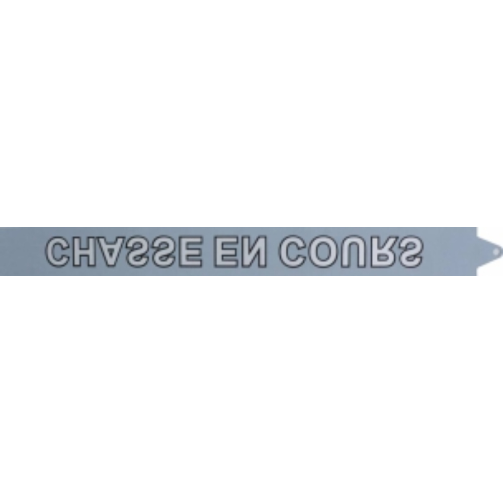 la réglette "chasse en cours" pour la référence 16950, un accessoire essentiel pour une signalisation efficace. Conçue pour indiquer clairement les zones de sécurité, cette réglette est parfaite pour les chantiers et les environnements nécessitant une attention particulière.