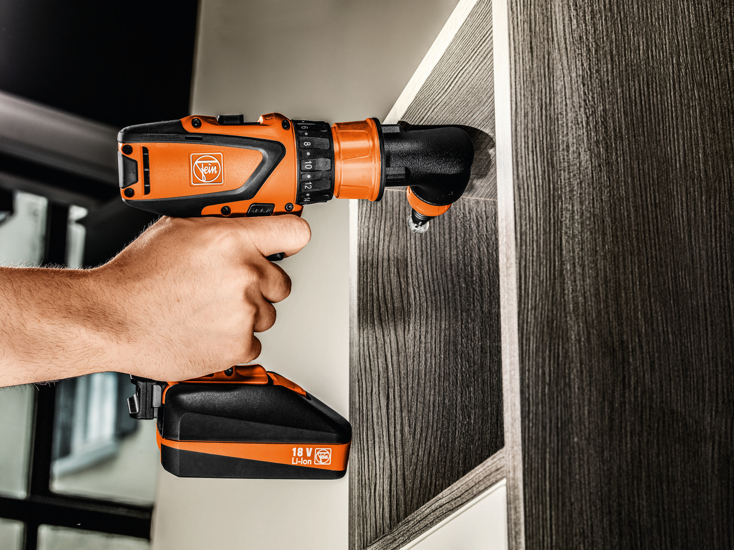 Renvoi d’angle. Renvoi d’angle en métal pour le perçage, taraudage et vissage dans des espaces réduits. Les accessoires FEIN QuickIN tels que le mandrin de perçage, le porte-embout ou l’adaptateur pour douilles peuvent être fixés au renvoi d’angle. Compatible avec toutes les visseuses sans fil FEIN avec interface QuickIN/QuickIN MAX.