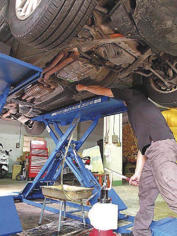Réservoir pour remplissage d'huile de transmission avec pompe pour éviter la détérioration de l'huile.