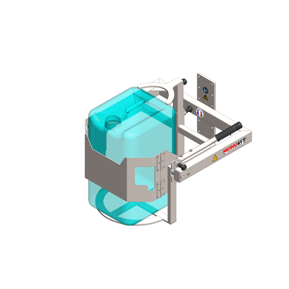 - Il permet de saisir, lever et retourner le bidon en toute sécurité