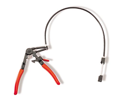 Découvrez la pince spécialement conçue pour le montage et le démontage des colliers auto-serrants difficiles d'accès. Cet outil est idéal pour les colliers de type 'Mubea', garantissant une utilisation sans effort même dans les situations les plus délicates.