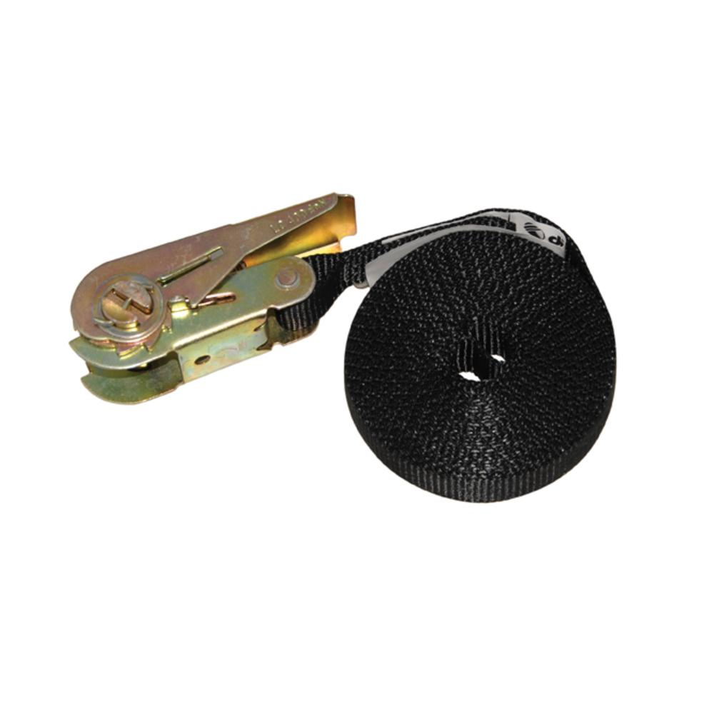 Sangle en polyester et cliquet en métal bichromaté pour une meilleure résistance de serrage.