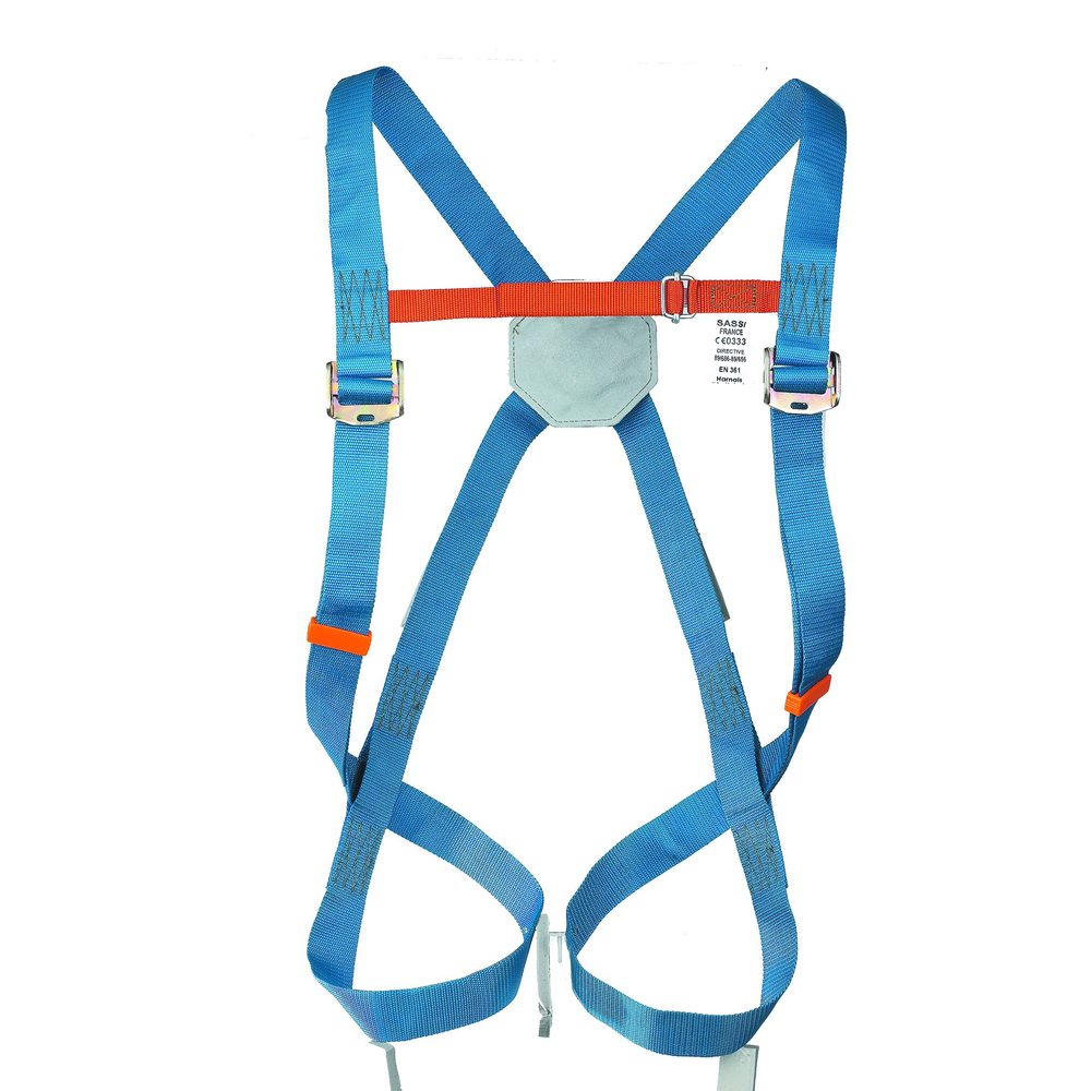 Ce harnais est fabriqué en sangle polyester et dispose d’un point d’accrochage dorsal unique. Il intègre un réglage facile des bretelles par boucles à serrage progressif pour un ajustement rapide et sécurisé.