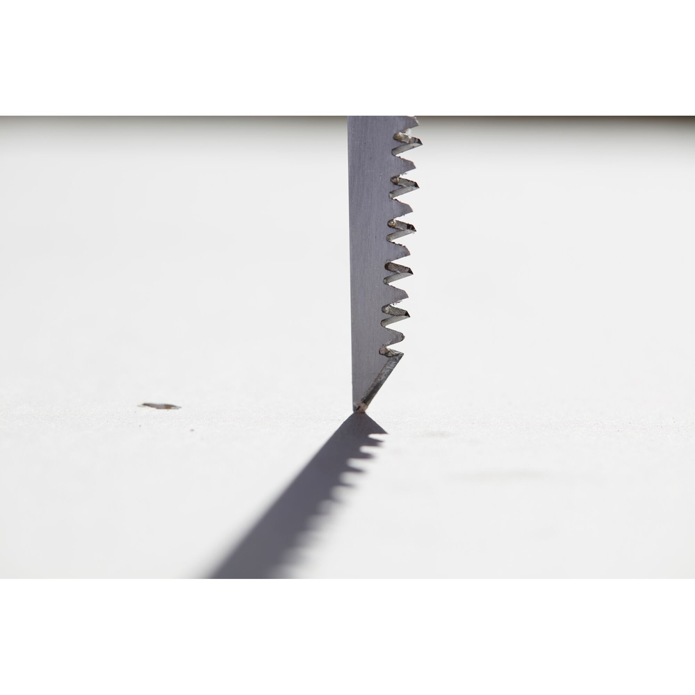 Cette scie de 150 mm est conçue pour un usage intensif, grâce à sa denture de 7 dents par pouce qui optimise la coupe dans le bois, le plastique et les plaques de plâtre. Sa pointe acérée permet une pénétration aisée dans les matériaux, facilitant ainsi l'enfoncement de la lame. La denture JetCut, avec son traitement hard point, assure une longévité de coupe accrue et une meilleure pénétration grâce à son voyage alterné.