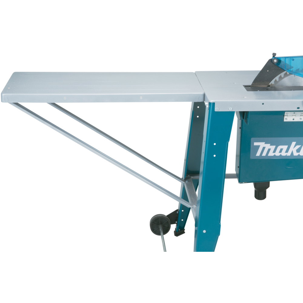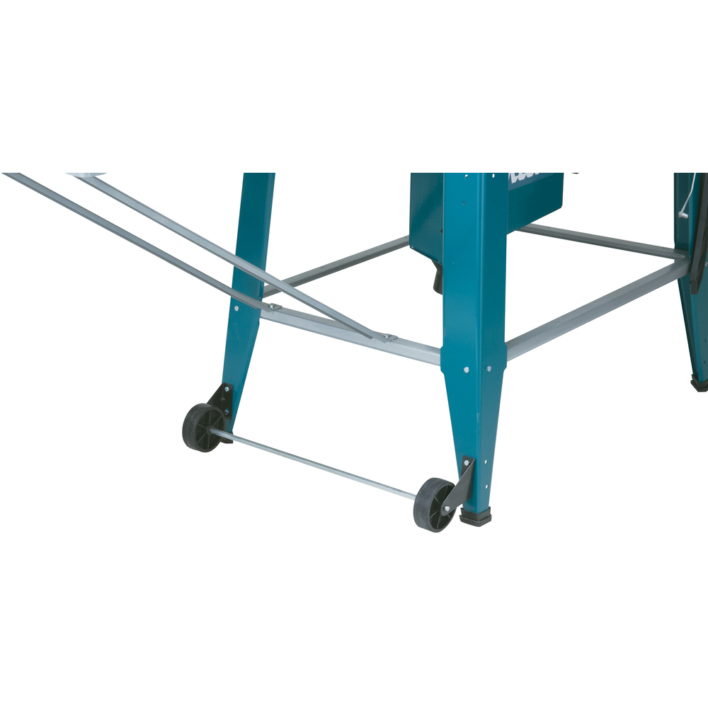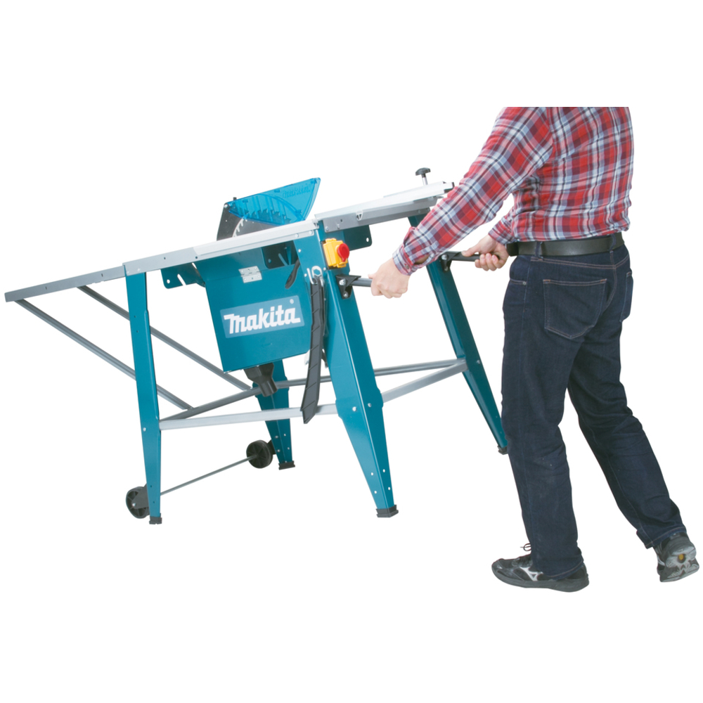 Son moteur à induction robuste et sans entretien assure des performances stables. Son design mobile avec poignées pliables et roues facilite son transport. L’extension arrière augmente la surface de travail, ce qui est utile pour manipuler de grandes pièces sur chantier ou en atelier.