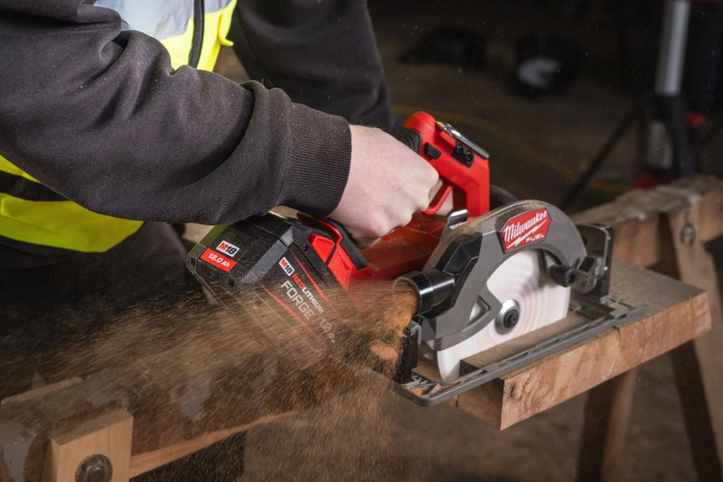 Offre les mêmes performances qu'une scie circulaire filaire équivalente, avec la possibilité de réaliser jusqu'à 700 coupes sur du pin de 90 x 45 mm (l'équivalent de 64 m de coupe linéaire sur du pin de 42 mm d'épaisseur) avec une batterie FORGE™ M18 FB12