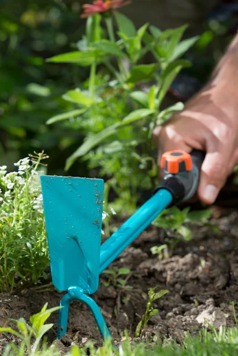 Avec la serfouette à fleurs combisystem combisystem GARDENA, vous pouvez facilement ameublir et aérer le sol et enlever les mauvaises herbes. Le combisystem GARDENA permet une utilisation flexible grâce aux accessoires interchangeables. La serfouette à fleurs combisystem est compatible avec tous les manches du combisystem GARDENA et peut être montée et fixée avec le manche. Pour travailler confortablement sans se pencher, vous pouvez facilement retirer la poignée et la remplacer par n'importe quelle poignée combisystem. La poignée d'extension combisystem pour outils à main (n° art. 8900-20) est idéale pour prolonger les outils à main. Le raccordement sécurisé entre le râteau la serfouette et le manche vous assure un confort de travail permanent. Pour une manipulation confortable, la serfouette est dotée d'une poignée de forme ergonomique avec composant souple intégré. Elle est inclinée à l'extrémité pour empêcher votre main de glisser. La serfouette à fleurs de 5 cm de large comporte deux dents et une lame de forme droite. Elle est fabriquée en acier de haute qualité et dotée d'un revêtement Duroplast qui garantit une longue durée de vie du produit. Le porte-outils Flex combisystem (n° art. 3505-20) permet de ranger la serfouette à fleurs avec un faible encombrement.