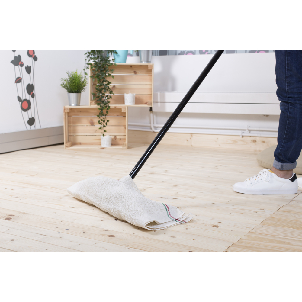 Cette serpillière s'utilise pour le nettoyage de toutes les surfaces dures. Il est conseillé de l'humidifier légèrement avant application pour faciliter le retrait des taches et la poussière. Pour un résultat optimal, associez-la à un nettoyant adapté au type de sol que vous souhaitez entretenir.
