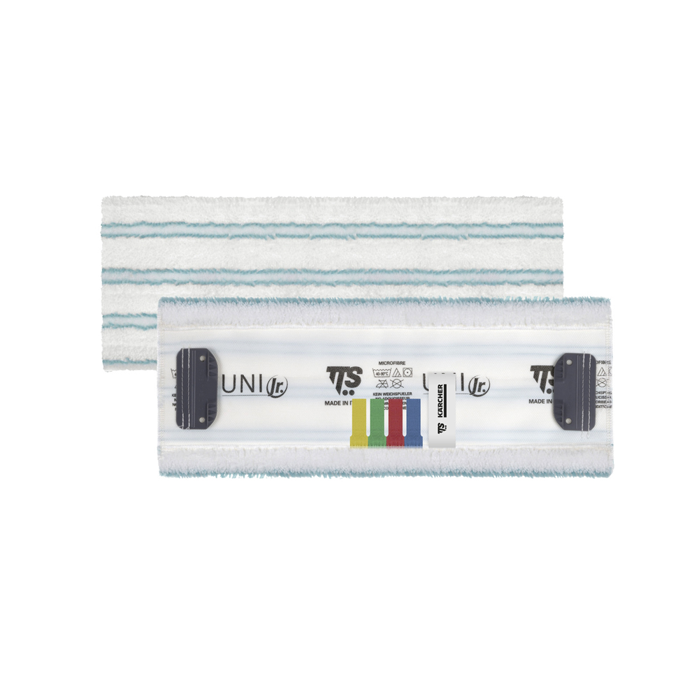 Ce textile réutilisable, composé à 80 % de PET et 20 % de PA, est compatible avec le système de fixation Uni System, garantissant une fixation sûre et rapide. La serpillière adhère parfaitement au sol et retient même les plus petites particules de poussière grâce à un dispositif antidérapant intégré qui empêche tout glissement pendant l’utilisation.