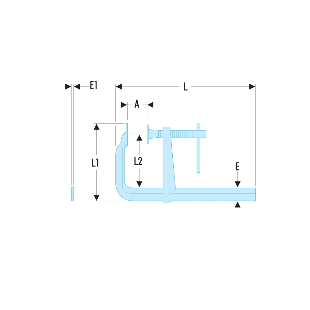 Ce serre-joint est conçu pour faciliter la fixation de pièces larges grâce à sa saillie de 150 mm. Il est particulièrement adapté aux travaux nécessitant un ajustement précis et un soutien prolongé. Pour l’utiliser, il suffit de placer les mâchoires sur les pièces à assembler et de tourner la pompe pour serrer efficacement.