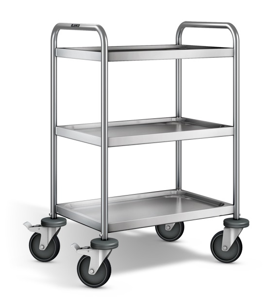 Desserte de service en inox, compatibilité alimentaire. Structure mécano soudée. Plateaux emboutis à bords repliés surélevés assurant la stabilité des charges. Revêtement insonorisant sous chaque plateau assurant un déplacement silencieux. Livré prêt à l'emploi. Excellente qualité de roulage. Platines galvanisées. Roues équipées de pare-fils et rondelles de protection pour les murs.