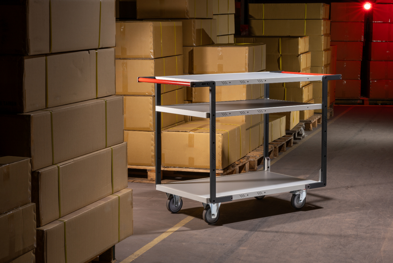 Dotée de 3 plateaux en bois mélaminé de 16 mm d'épaisseur, la servante modulable FIMM supporte jusqu'à 250 kg grâce à sa structure robuste, avec un châssis en tube de 35 x 20 mm et des renforts sous plateau. Elle offre une flexibilité d'usage avec ses double poignées ergonomiques et ses roues TPE de Ø 125 mm, dont 2 fixes et 2 pivotantes avec frein, assurant une manœuvrabilité aisée même dans les espaces restreints. Sa conception évolutive permet l'ajout d'un plateau supplémentaire, et son montage est facilité par l'option Flatpack. Dimensions totales : 1375 x 640 x 945 mm, avec un espacement entre les plateaux de 340 mm.