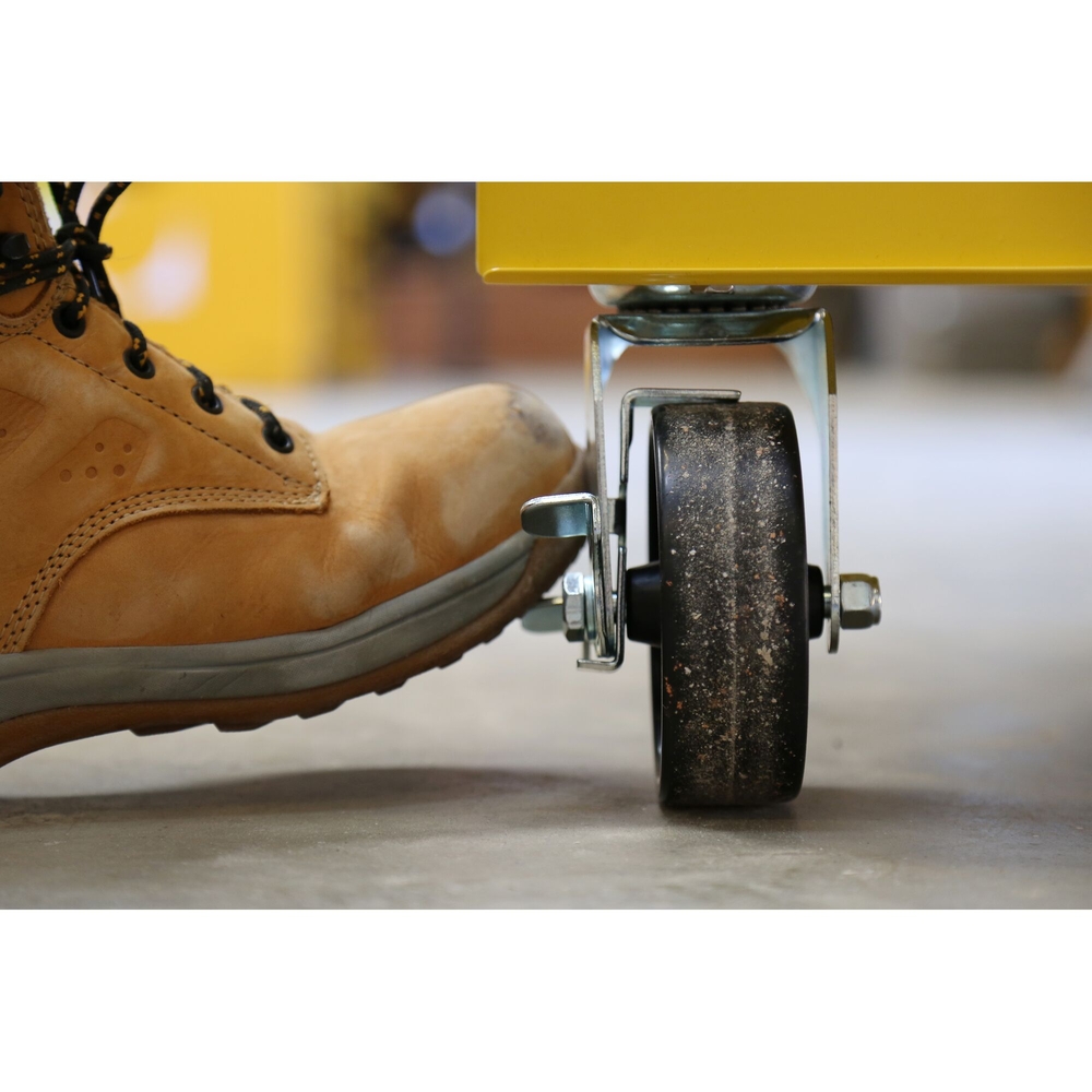 Cette servante est conçue avec quatre tiroirs robustes, dotés de glissières à roulement à billes pour une utilisation fluide et un accès facilité à vos outils. Avec une capacité de stockage de 23 kg par tiroir, elle offre un espace suffisant pour organiser vos équipements. Les roulettes, d'une capacité de charge totale de 272 kg, comprennent deux roues fixes et deux roues pivotantes pour une maniabilité optimale, le tout avec un système de freinage efficace pour garantir la stabilité.