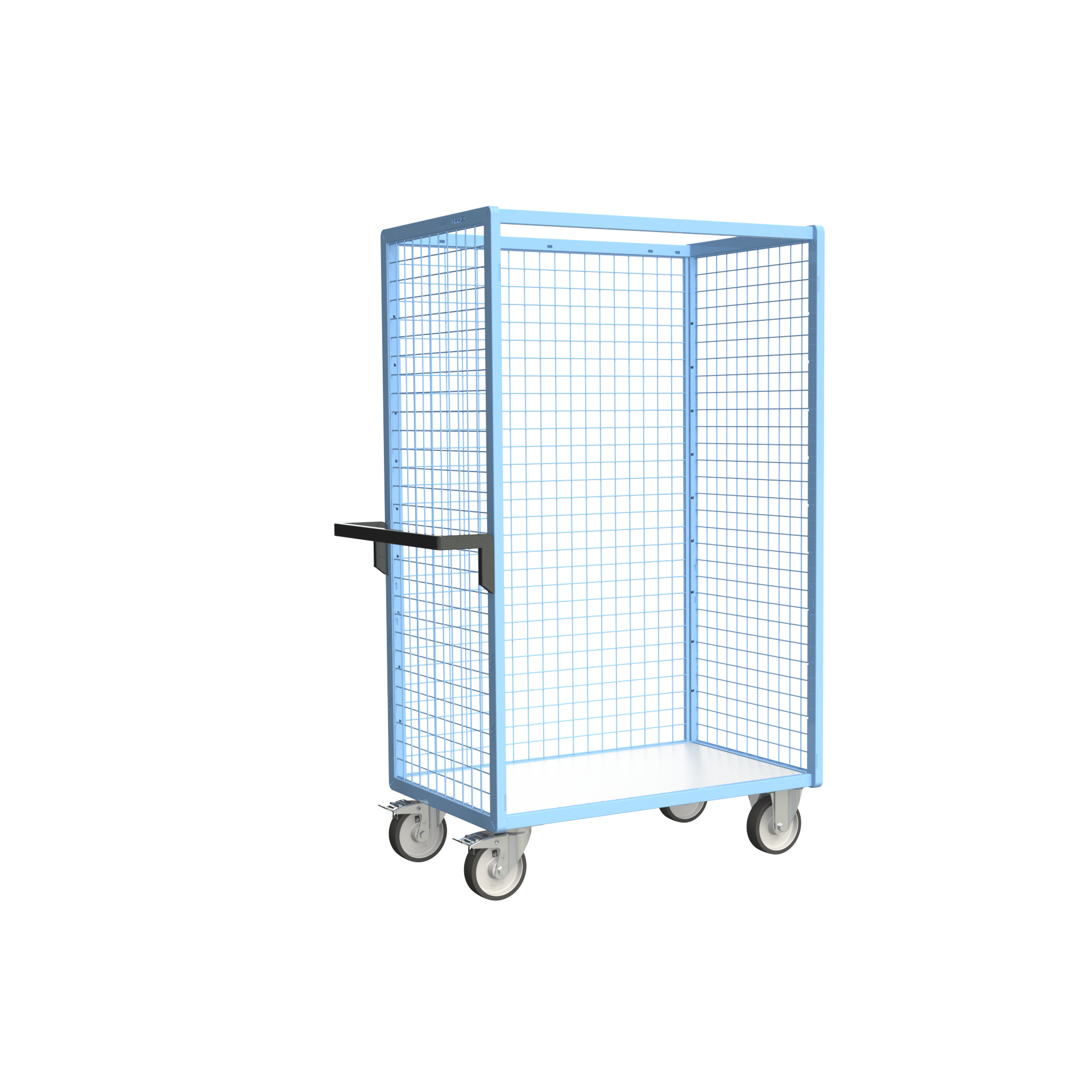 Châssis conçu pour des utilisations intensives entièrement mécano-soudé en tube rectangulaire de section 35 × 20 mm avec renforts sous plateaux. Poignée à hauteur ergonomique, en tube 35 × 20 mm pour une bonne prise en main. Panneaux grillagés en maille de 50 × 50 mm offrant une grande liberté de positionnement pour les étagères en option. Charge utile par étagère en option 100 kg. Plateau de la base inclus. Hauteur utile de 1460 mm. 2 roues fixes + 2 roues pivotantes à frein sur roulement à billes, norme EN 1757. Roues à bandage TPE non tachantes, silencieuses, effort au démarrage réduit de 50 %. Produit livré prêt à l'emploi : un gain de temps pour les professionnels, sauf poignée à monter.