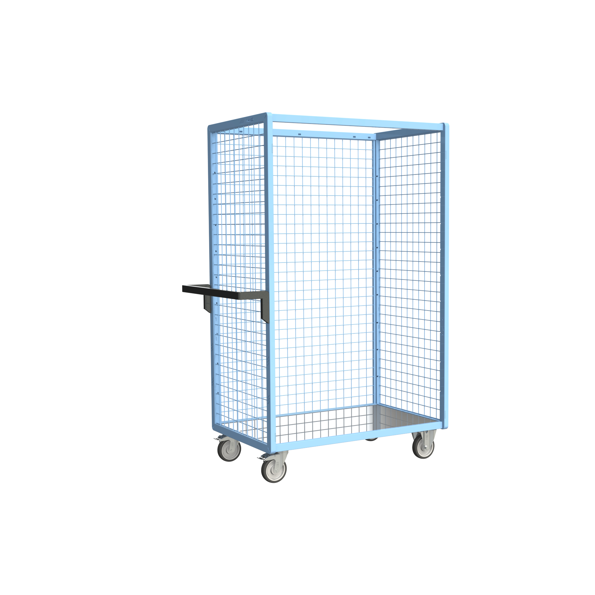 Châssis conçu pour des utilisations intensives entièrement mécano-soudé en tube rectangulaire de section 35 × 20 mm avec renforts sous plateaux. Poignée à hauteur ergonomique, en tube 35 × 20 mm pour une bonne prise en main. Panneaux grillagés en maille de 50 × 50 mm offrant une grande liberté de positionnement pour les étagères en option. Charge utile par étagère en option 100 kg. Plateau de la base inclus. Hauteur utile de 1460 mm. 2 roues fixes + 2 roues pivotantes à frein sur roulement à billes, norme EN 1757. Roues à bandage TPE non tachantes, silencieuses, effort au démarrage réduit de 50 %. Produit livré prêt à l'emploi : un gain de temps pour les professionnels, sauf poignée à monter.