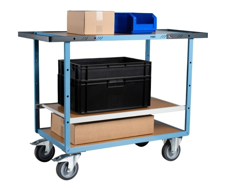 Servante mécano-soudée double poignées 3 plateaux mélaminé roues TPE 250 kg - FIMM - 880701522