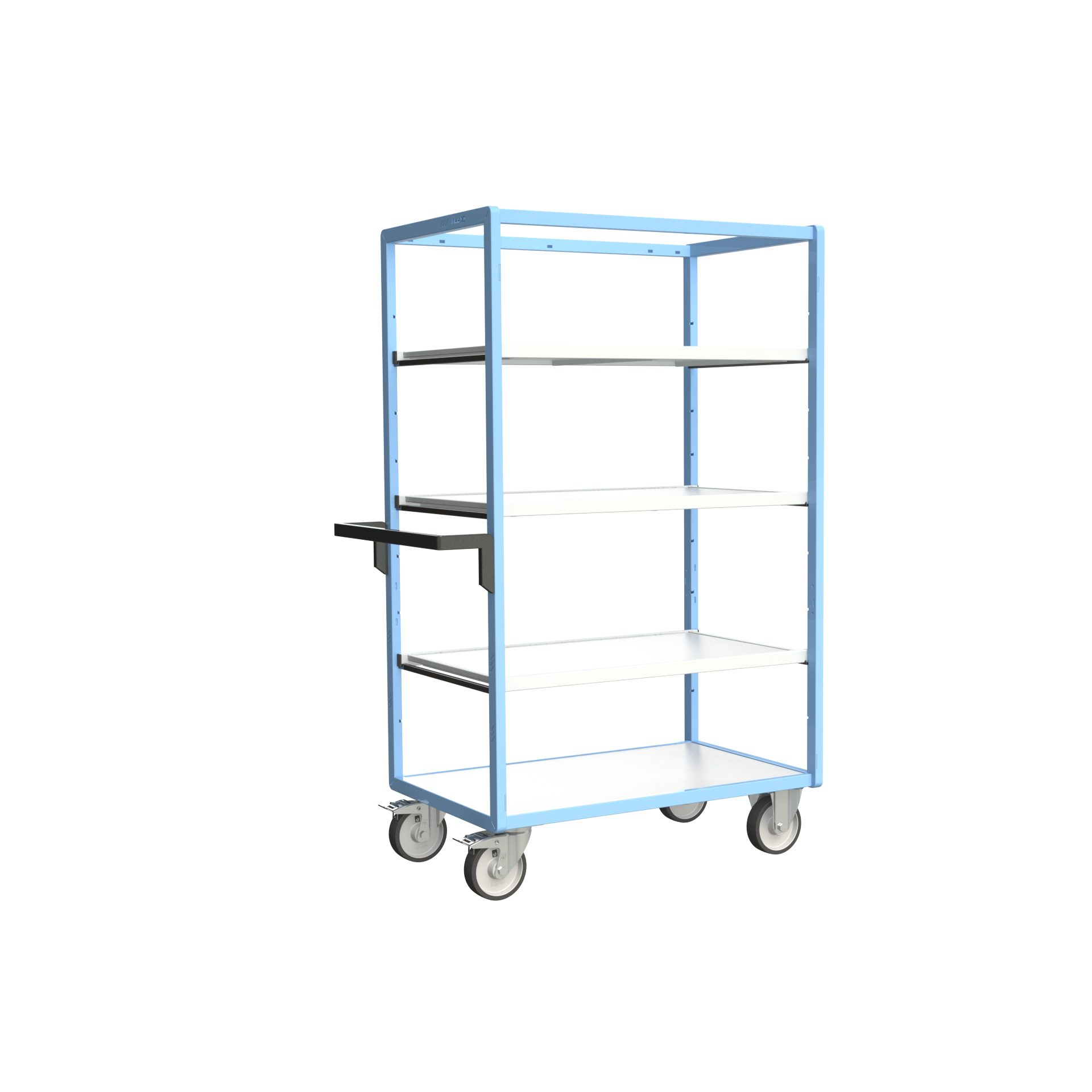 Châssis conçu pour des utilisations intensives entièrement mécano-soudé en tube rectangulaire de section 35 × 20 mm avec renforts sous plateaux. Poignée à hauteur ergonomique, en tube 35 × 20 mm pour une bonne prise en main. Plateau de la base inclus. Hauteur utile de 1460 mm. Peut accueillir jusqu’à 9 étagères avec un espace entre chaque de 130 mm. Charge utile par étagère, 100 kg. 2 roues fixes + 2 roues pivotantes à frein sur roulement à billes, norme EN 1757. Roues à bandage TPE non tachantes, silencieuses, effort au démarrage réduit de 50 %. Produit livré prêt à l'emploi : un gain de temps pour les professionnels, sauf poignée à monter.