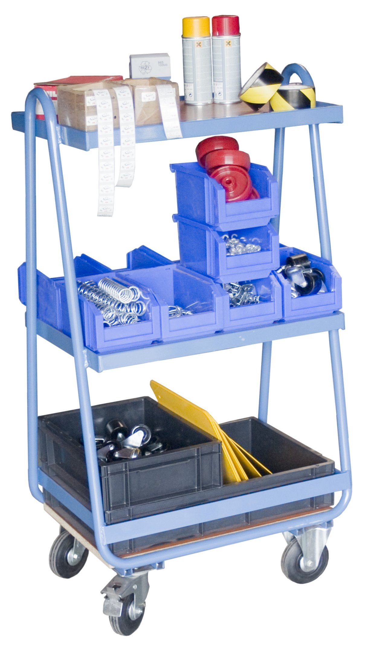 Servante pour approvisionnement et aménagement de postes de travail. Servante en acier entièrement mécano soudée, très stable grâce à sa structure triangulaire. Peinture époxy très résistante. Fabrication française de qualité. Livré prêt à l'emploi.