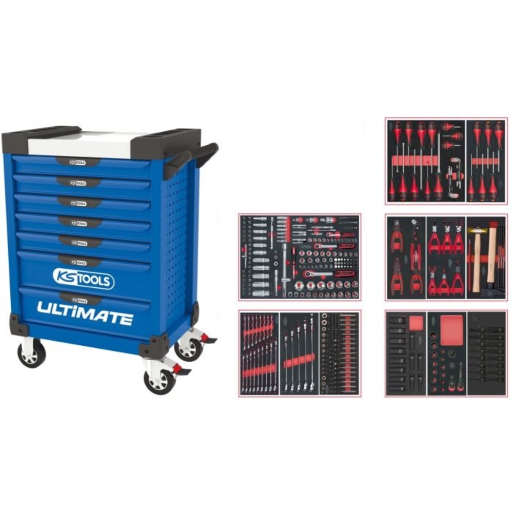 Servante ULTIMATE bleue 7 tiroirs équipée de 384 outils KS TOOLS - 804.7380
