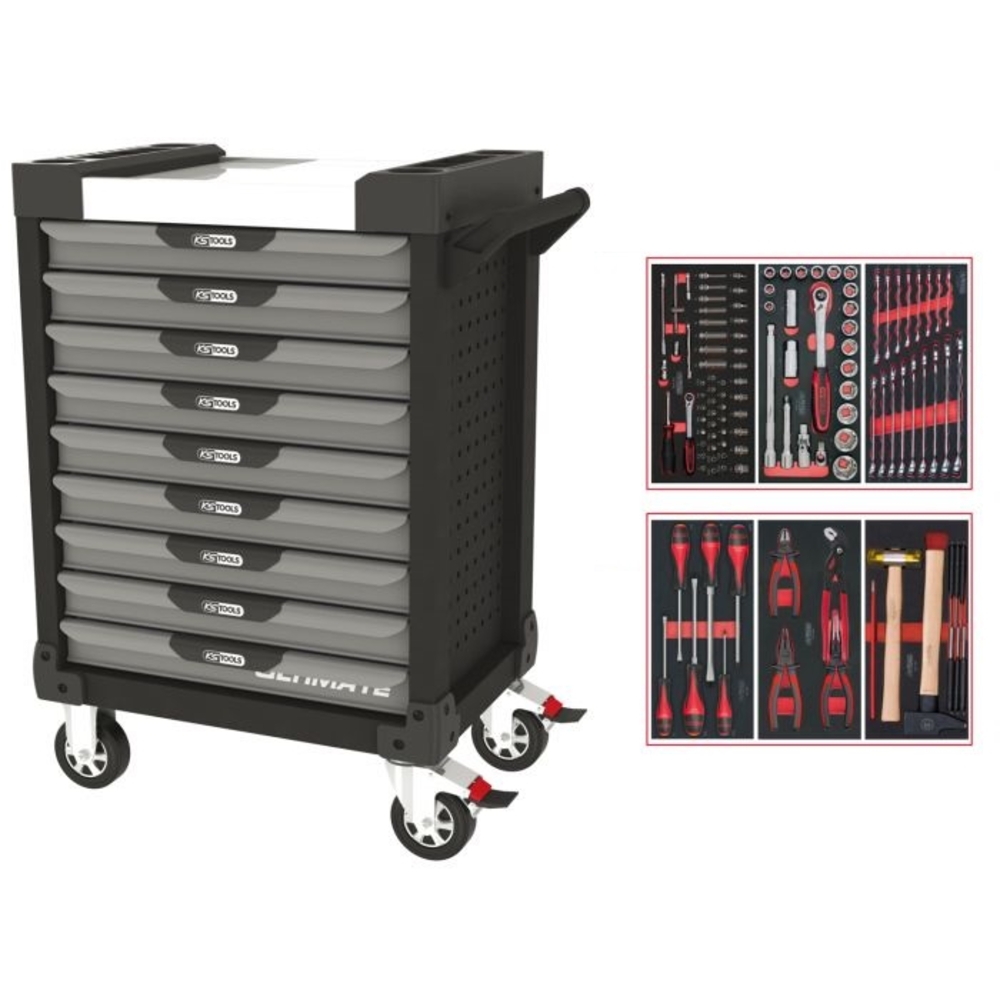 Servante ULTIMATE grise et noire 9 tiroirs équipée de 114 outils KS TOOLS - 816.9114