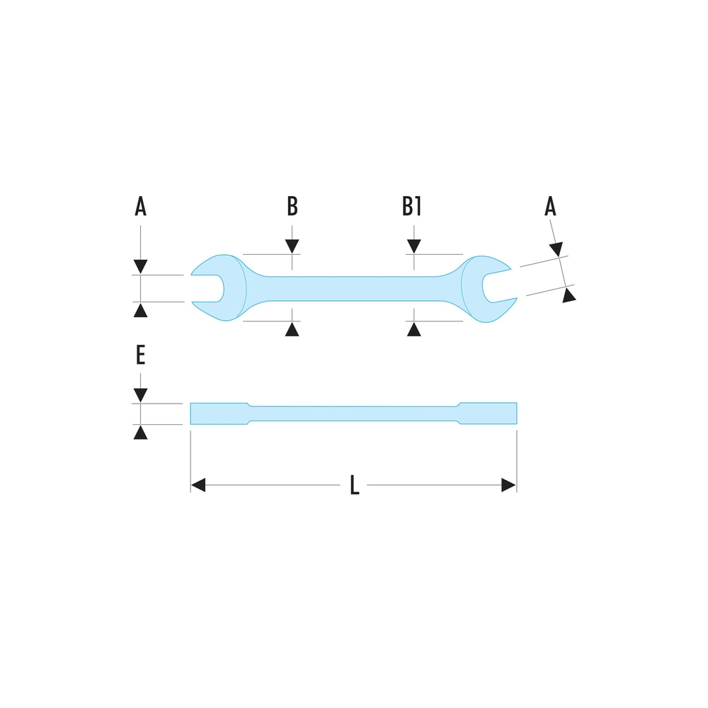 La clé comprend des fourches fines pour une meilleure accessibilité, et ses têtes inclinées à 15° facilitent les manœuvres dans des espaces réduits. Avec ses dimensions métriques allant de 6 à 41 mm et sa finition chromée satinée, cet outil est durable et pratique.