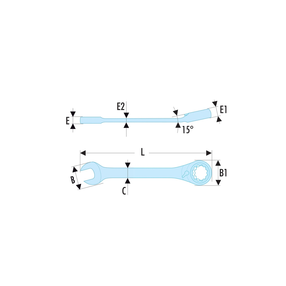 Elle dispose d'un incrément de 5° pour optimiser son utilisation (6° pour les cotes 7, 8 et 9 mm). La tête annulaire est inclinée à 15°, tandis que la tête ouverte est coudée à 15°, offrant ainsi un accès facilité dans des espaces restreints. Sa taille métrique est de 12 mm et sa finition chrome satiné assure une durabilité et une résistance à la corrosion. Cette clé est un incontournable pour tout professionnel à la recherche de performance et de fiabilité.